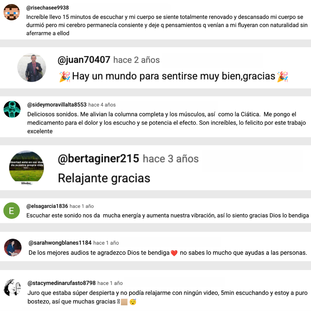 En YouTube hay muchos audios, pero suelen ser genéricos y no siempre están bien diseñados ni tienen objetivos terapéuticos claros. Con este pack, ahorrás horas de búsqueda y dudas, porque recibís sonidos profesionales, ya organizados. Así podés enfocarte en sentirte bien, sin perder tiempo probando opciones que no siempre funcionan.